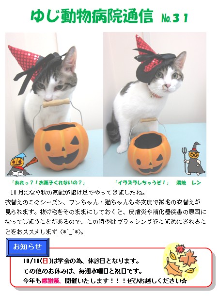ゆじ動物病院 VoL.31の1:今月の特集はアレルギーです。(2010-10-01)、福岡前原のゆじ動物病院がお届けする季節のイベントやお客様にとてもお得なニュース情報満載