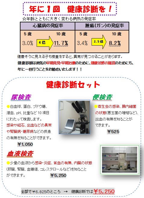 ‚ä‚¶“®•¨•a‰@@VoL.‚X‚Ì‚QF”N‚É‚P‰ñ@Œ’Nf’f‚ð